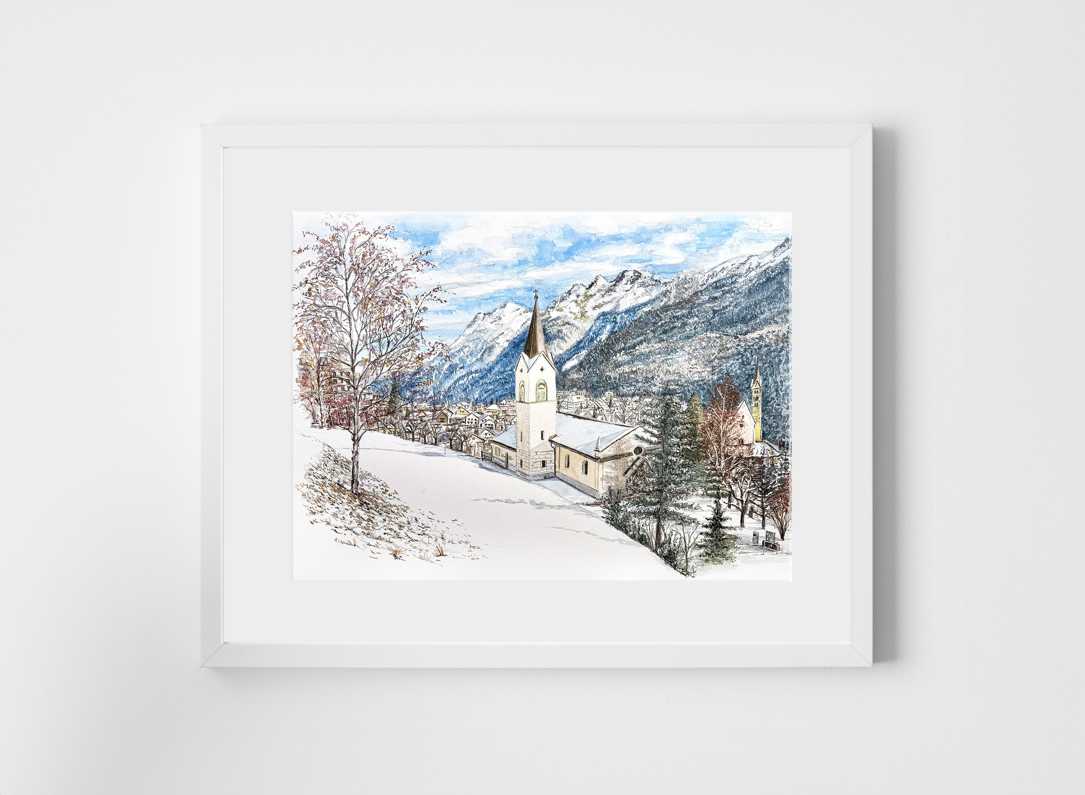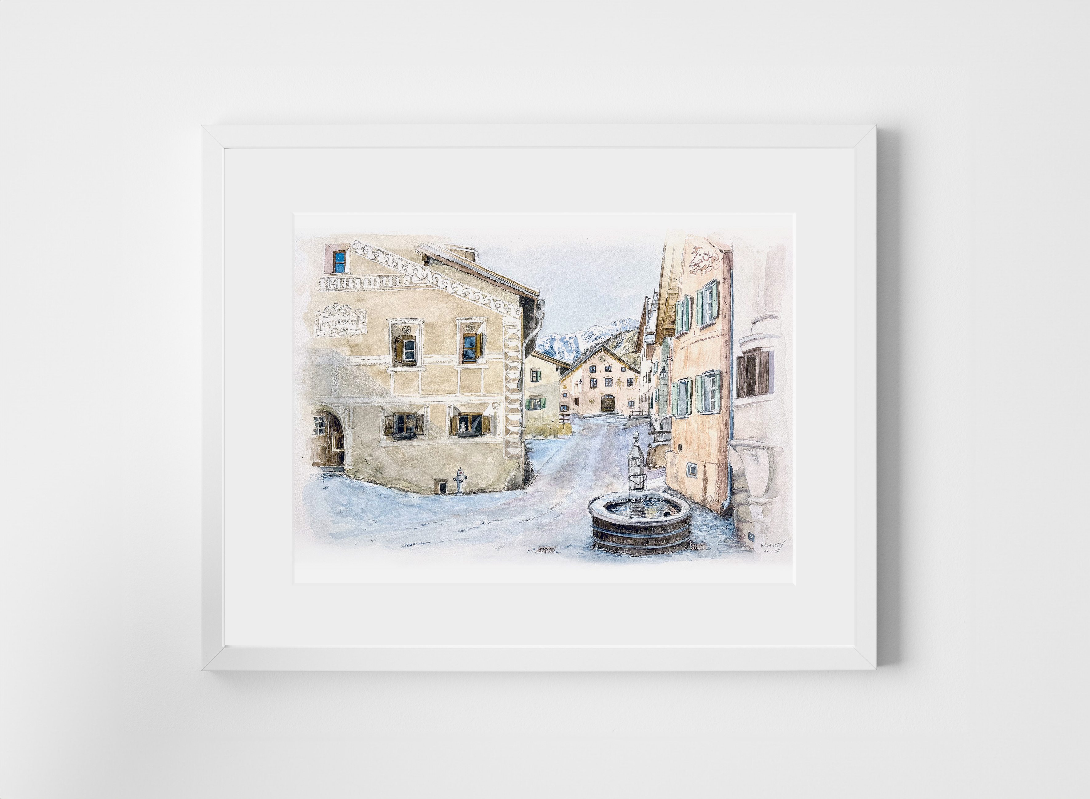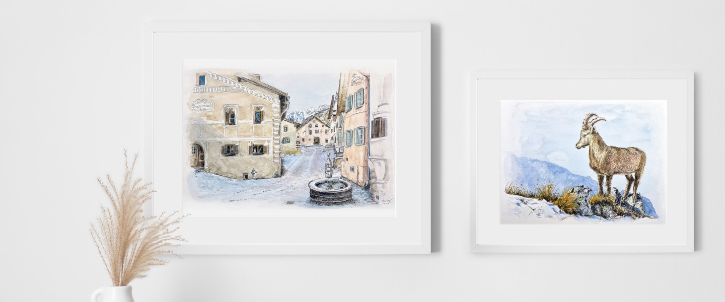Diese Serie entstand für die unjurierte Ausstellung «Kunst in der Zwicky 2025» mit Künstlern und Künstlerinnen aus der Gemeinde Fällanden. Sie umfasst insgesamt neun Aquarelle und zeigt Landschaften und Tiere aus Graubünden.